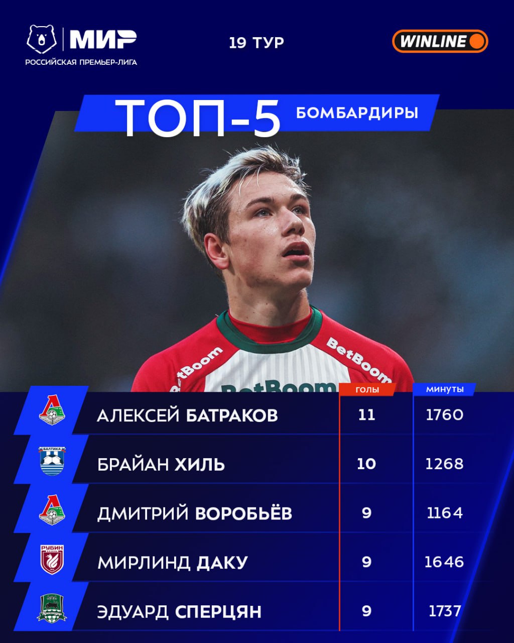 Дмитрий Воробьёв ворвался в тройку бомбардиров, а лучший по-прежнему Алексей Батраков 🔝