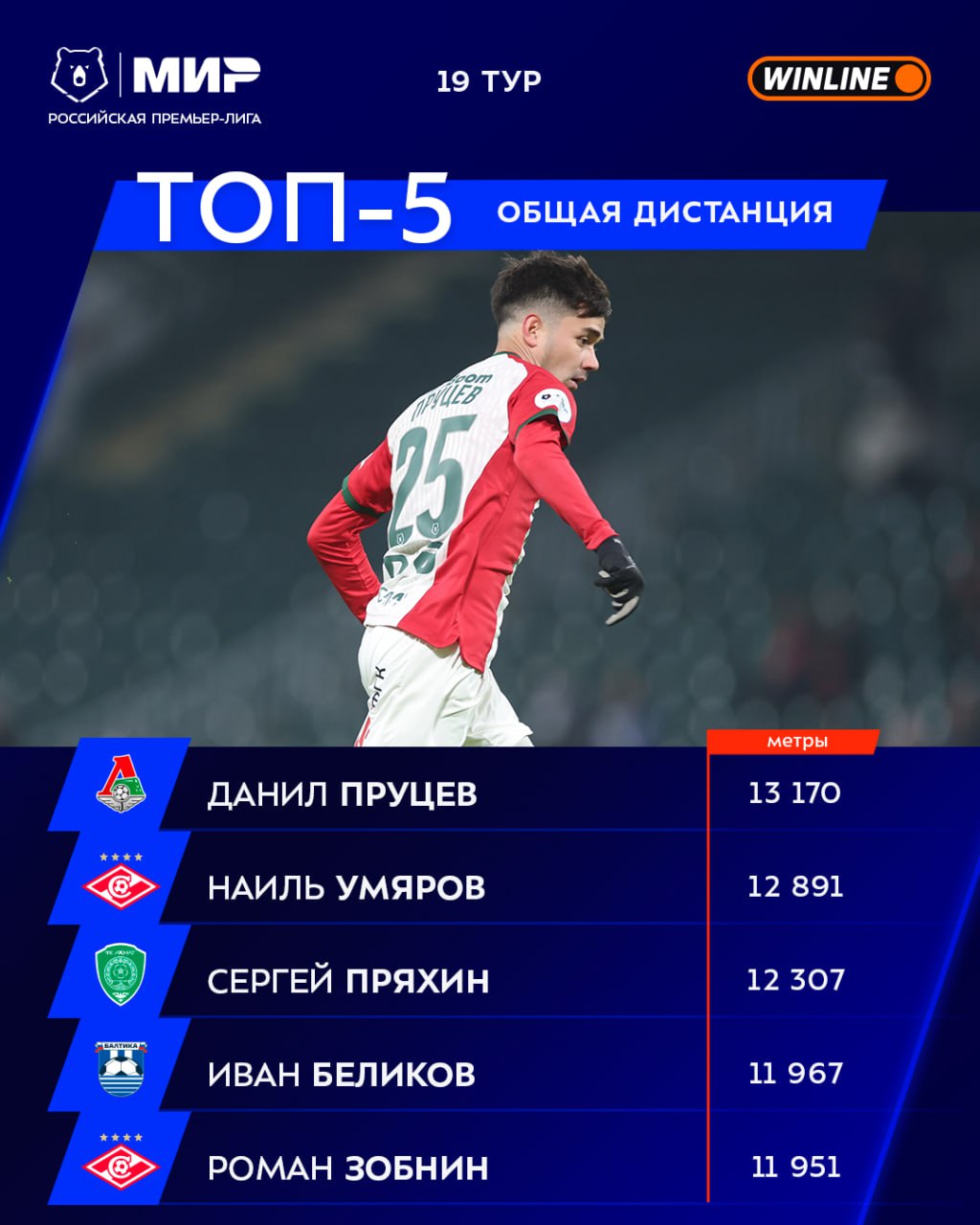 Вот они, главные трудяги 19-го тура #МирРПЛ во главе с Данилом Пруцевым — знакомьтесь с топом по пробегу 🏃🏼‍➡️