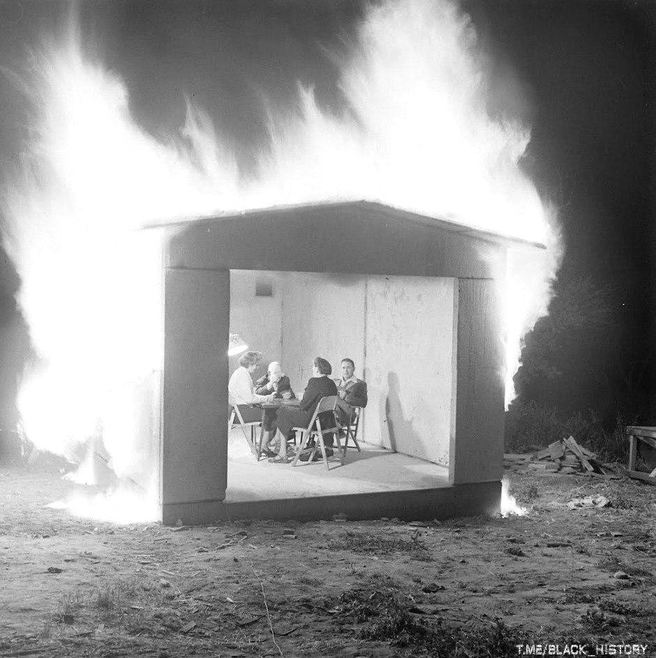Тестирование нового огнеупорного строительного материала. Нью-Хейвен, 1949 год.