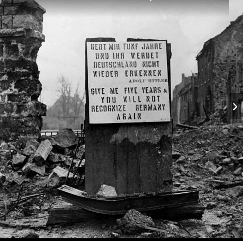 Табличка, на которой написана цитата Гитлера: «Дайте мне 5 лет, и вы не узнаете Германию», Берлин, 1945 год.