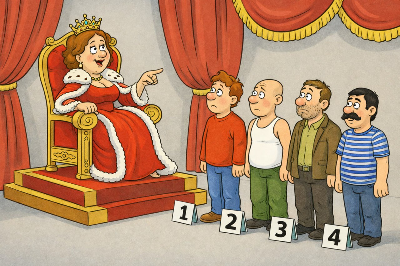 Царица объявила конкурс: кто за ночь сможет 20 раз переспать с ней — тому она отдаст полцарства, а кто не сможет — тому голову с плеч!