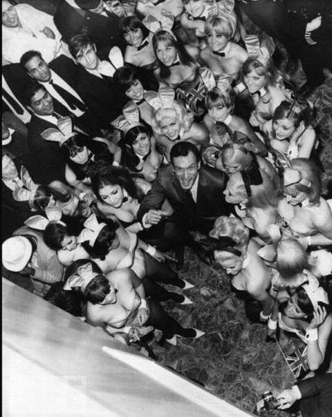 Ocнователь Плейбоя Хью Xeфнep co cвоими зaйками. CШA, 1970-е.