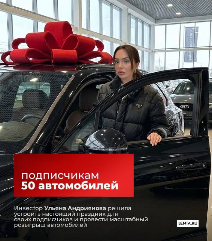 __-Инвестор Ульяна Андрианова в своём телеграм канале объявила о старте розыгрыша 50 новых автомобилей. Участники проекта должны быть подписаны на канал до конца этой недели, чтоб иметь возможность выиграть авто__