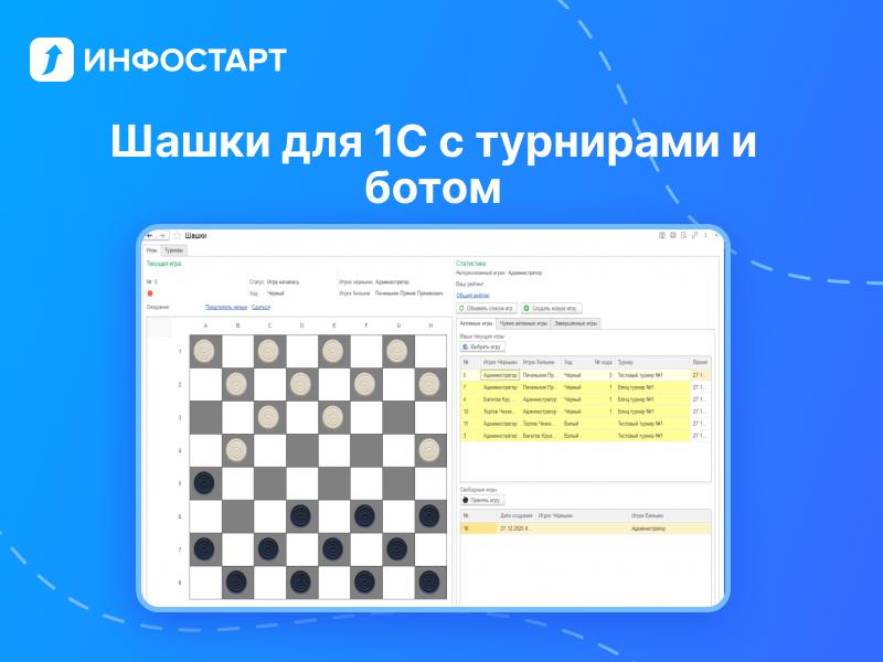 ♟️ Шашки для 1С: турниры, бот, команда