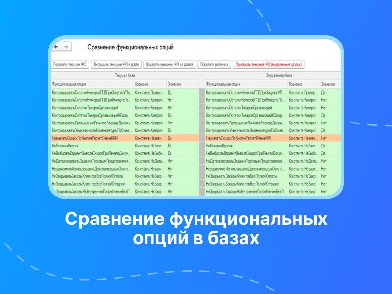 Обработка для сравнения функциональных опций в похожих конфигурациях.