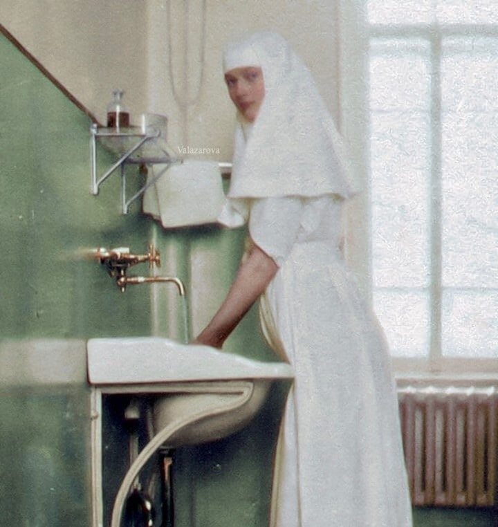 Великая княжна Татьяна Николаевна работая медсестрой в госпитале в Царском Селе. 1916 г.