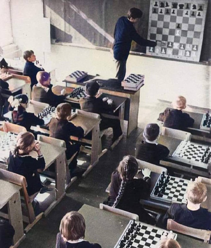 Шахматный класс в одной школе в Пскове 1975 год