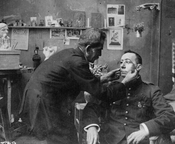 Маска из меди для участника войны во времена, когда еще не слышали о пластической хирургии 1918 год.