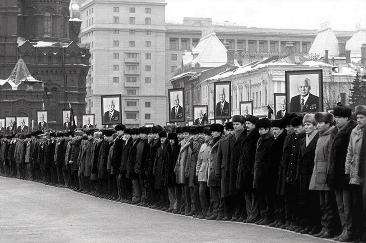 Сотрудники КГБ на Красной площади во время похорон Черненко, СССР, 1985 год.