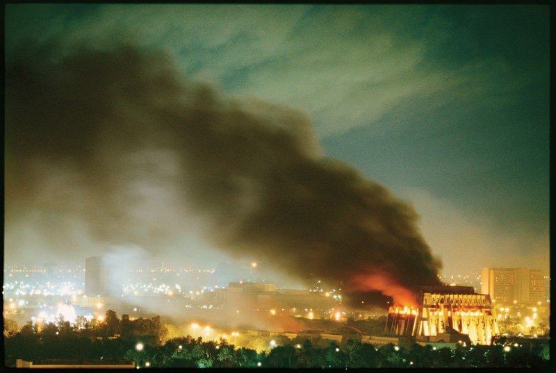 Горящий дворец Хуссейна. Багдад, 21 марта 2003 года
