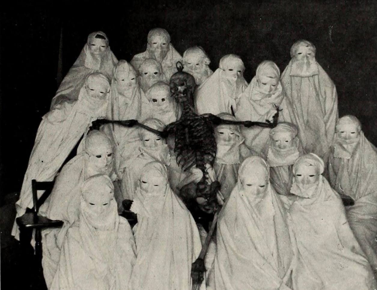 Медицинские студенты с подлинным человеческим скелетом, 1900 год.