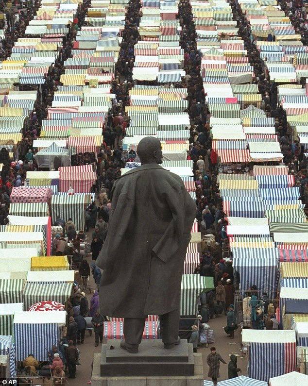 Ленин и торговые палатки, Москва, 1996 год.