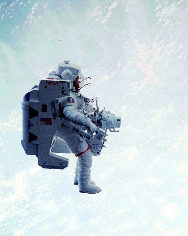 Брюс Маккэндлесс во время своего легендарного выхода в открытый космос в 1984 году. Без страховочного фала.