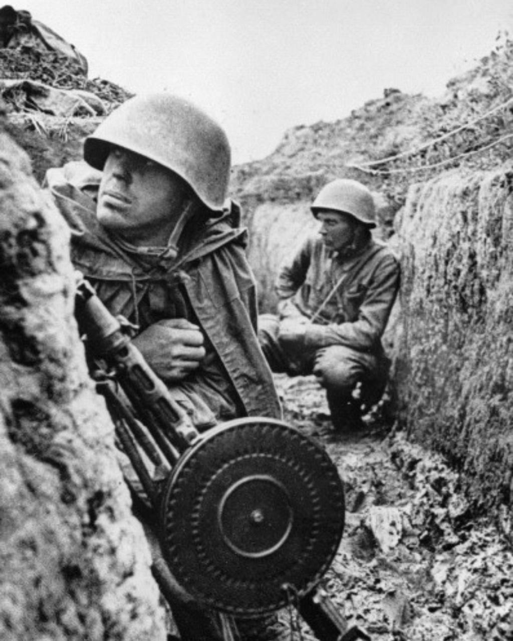 Советские солдаты в окопе близ Ленинграда, СССР, 1 сентября 1941 года.