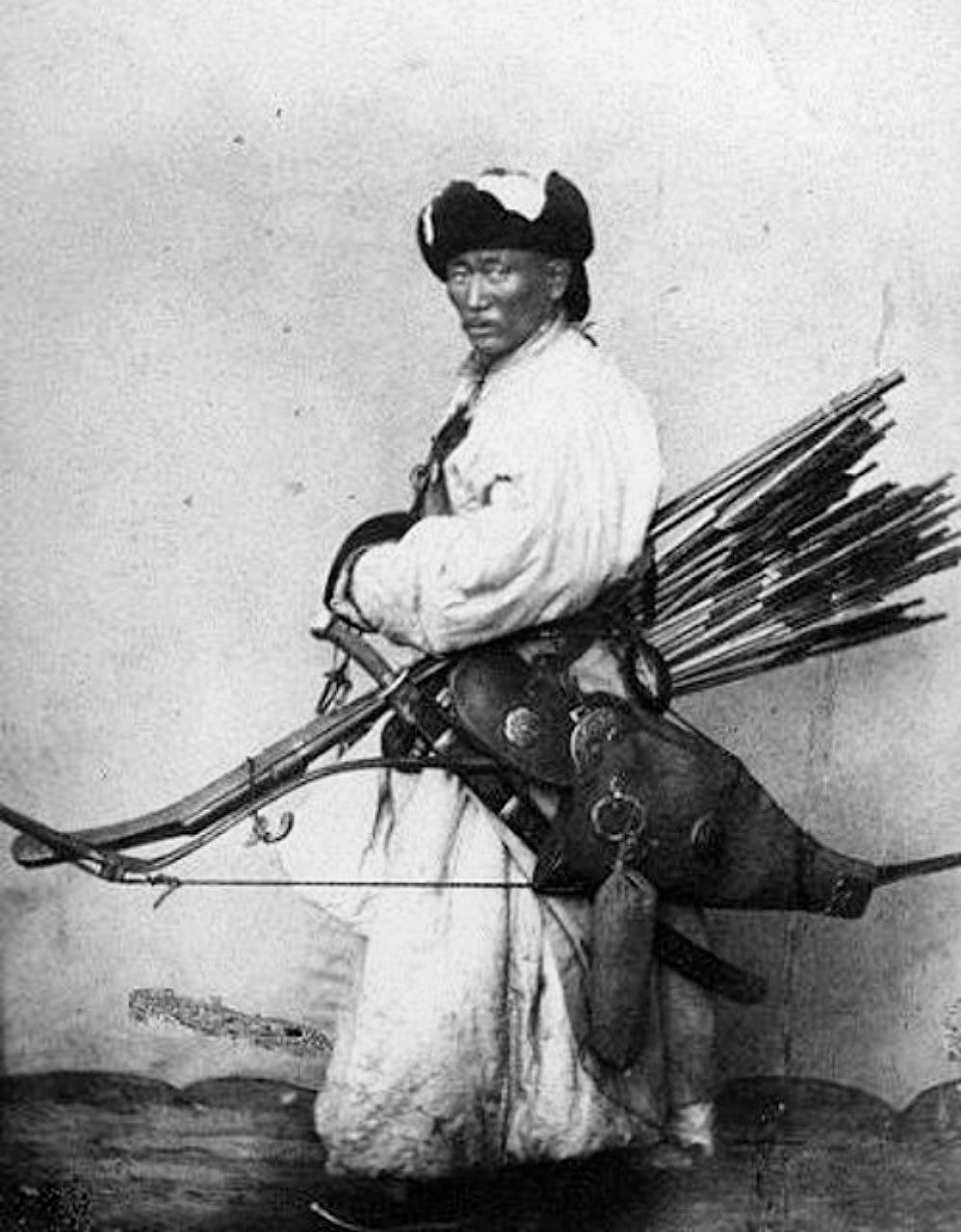 Монгольский воин в полном боевом облачении, Монголия, 1900 год.