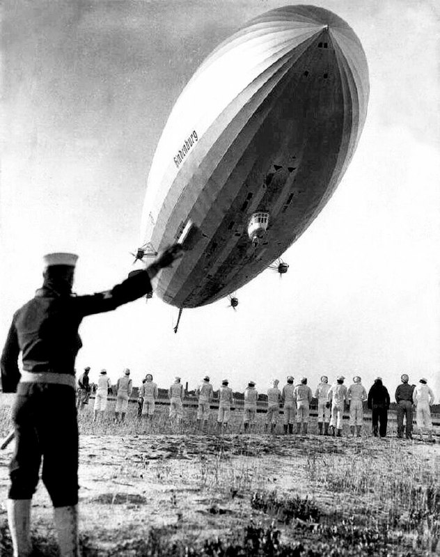 Успешная посадка дирижабля «Гинденбург» примерно за год до катастрофы, США, 1936 год.