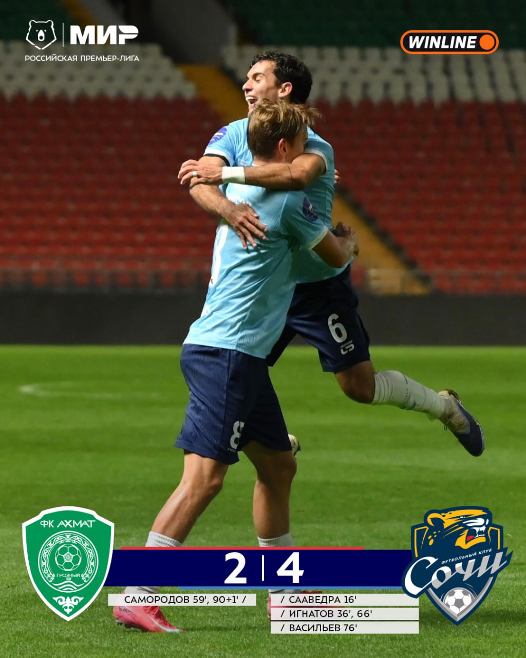 Для «Сочи» 13-й тур точно счастливый — победа в Грозном и подъём по таблице 👻