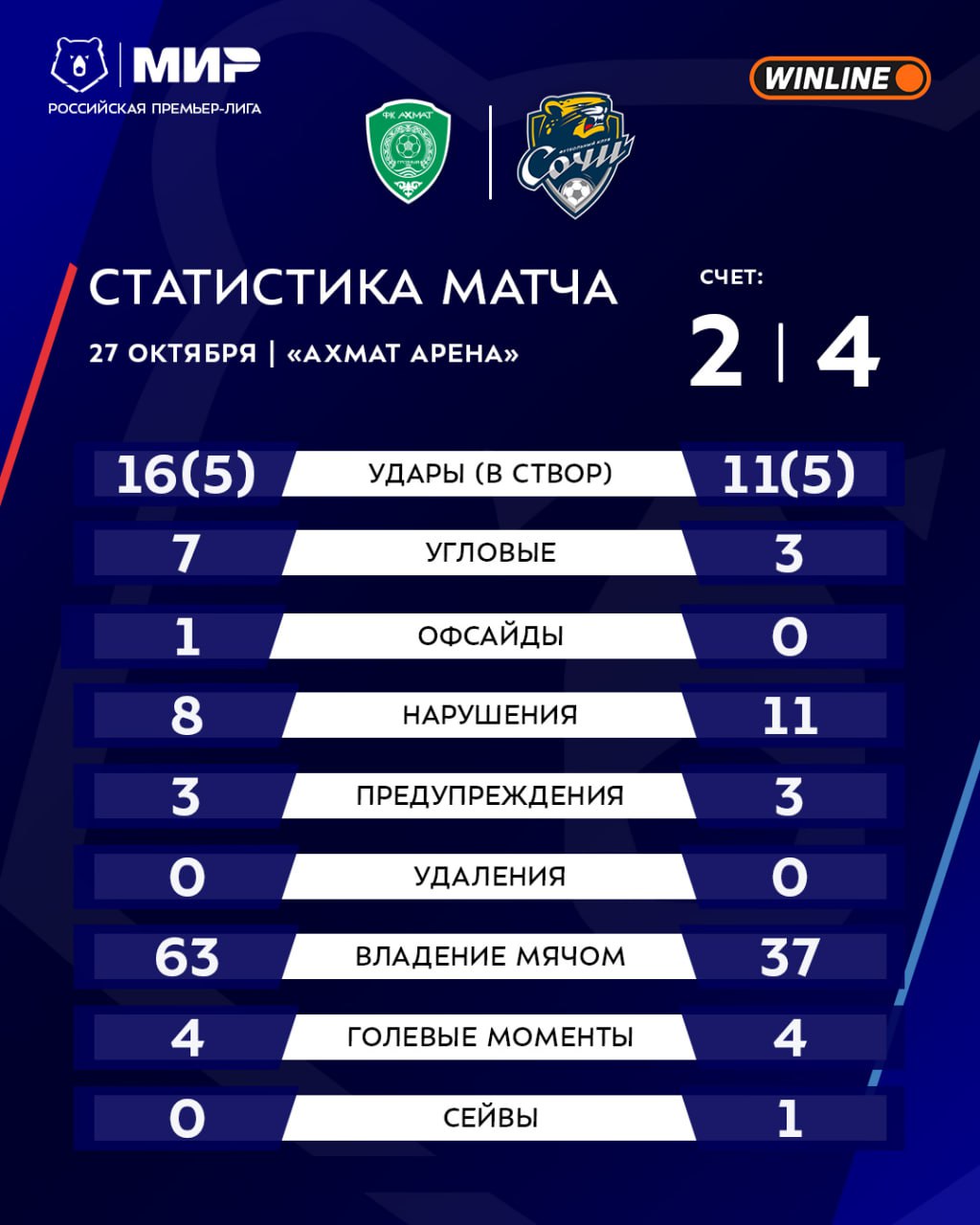 🏅🏅🏅🏅🏅🏅 По голевым моментам равенство, а счёт на табло в пользу «Сочи» 🤓