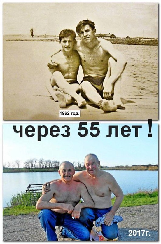 **Я – слева, со своим другом. Первый снимок 1962 года, следующий, на том же месте – в 2017 году. К большому сожалению, друг недавно ушёл из жизни.**