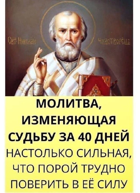 Сильная молитва Николаю Чудотворцу, изменяющая судьбу за 40 дней. Читайте ее каждый день с верой и надеждой, и Вы не поверите, как изменится Ваша жизнь! Эта удивительная молитва уже помогла множеству православных людей, поможет и Вам. ⠀