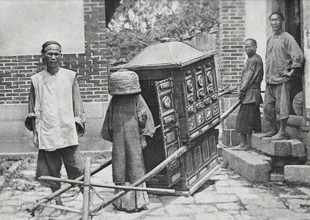 Юная красавица-невеста возвращается со свадьбы, сопровождаемая своим богатым приданым. Китай, 1912 год.