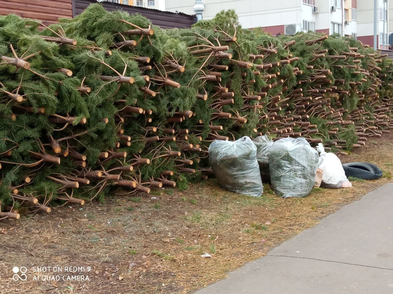Елки привезли, на Транспортной. Неделю точно лежат, может больше. Интересно, что останется от них до нового года? Они уже желтеют.