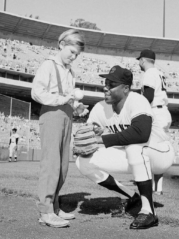 Курт Рассел получает мяч, подписанный бейсболистом Вилли Макабби, 1960-е годы.