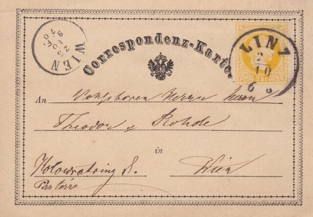 В Вене выпущена первая в мире почтовая открытка с маркой