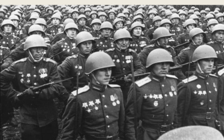 Coвeтские coлдaты остaвляют pocписи на стенах Рейхстага, Германия, 1945 гoд.
