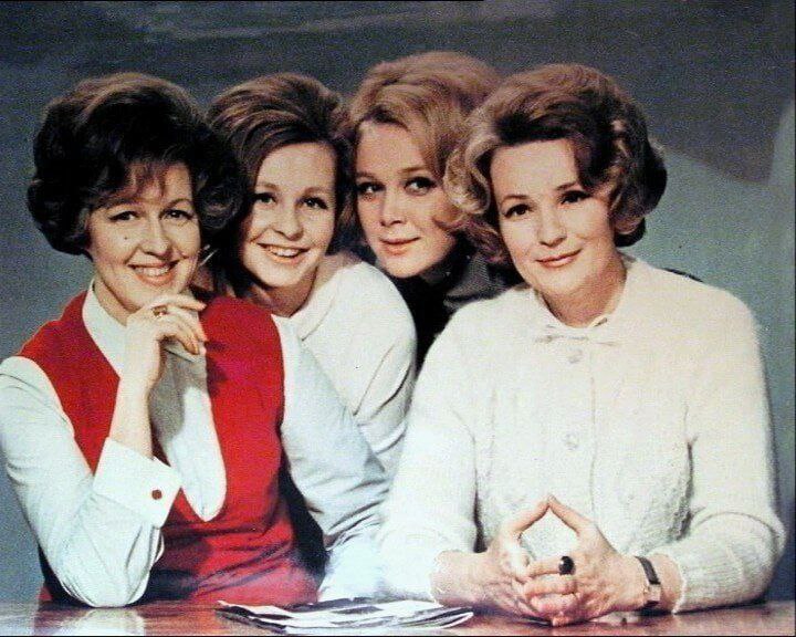 Дикторы ЦТ СССР Валентина Леонтьева, Ангелина Вовк, Валентина Печорина, Нина Кондратова, 1960-е.