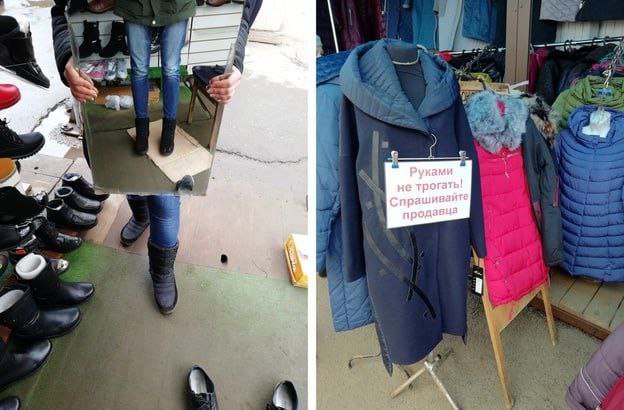 В 90-х на рынках не было примерочных. Вместо этого в укромном уголке стелили большой кусок картона, чтобы покупатели могли примерить одежду, не испачкав её в грязи или не намочив, ведь торговля шла в любую погоду.