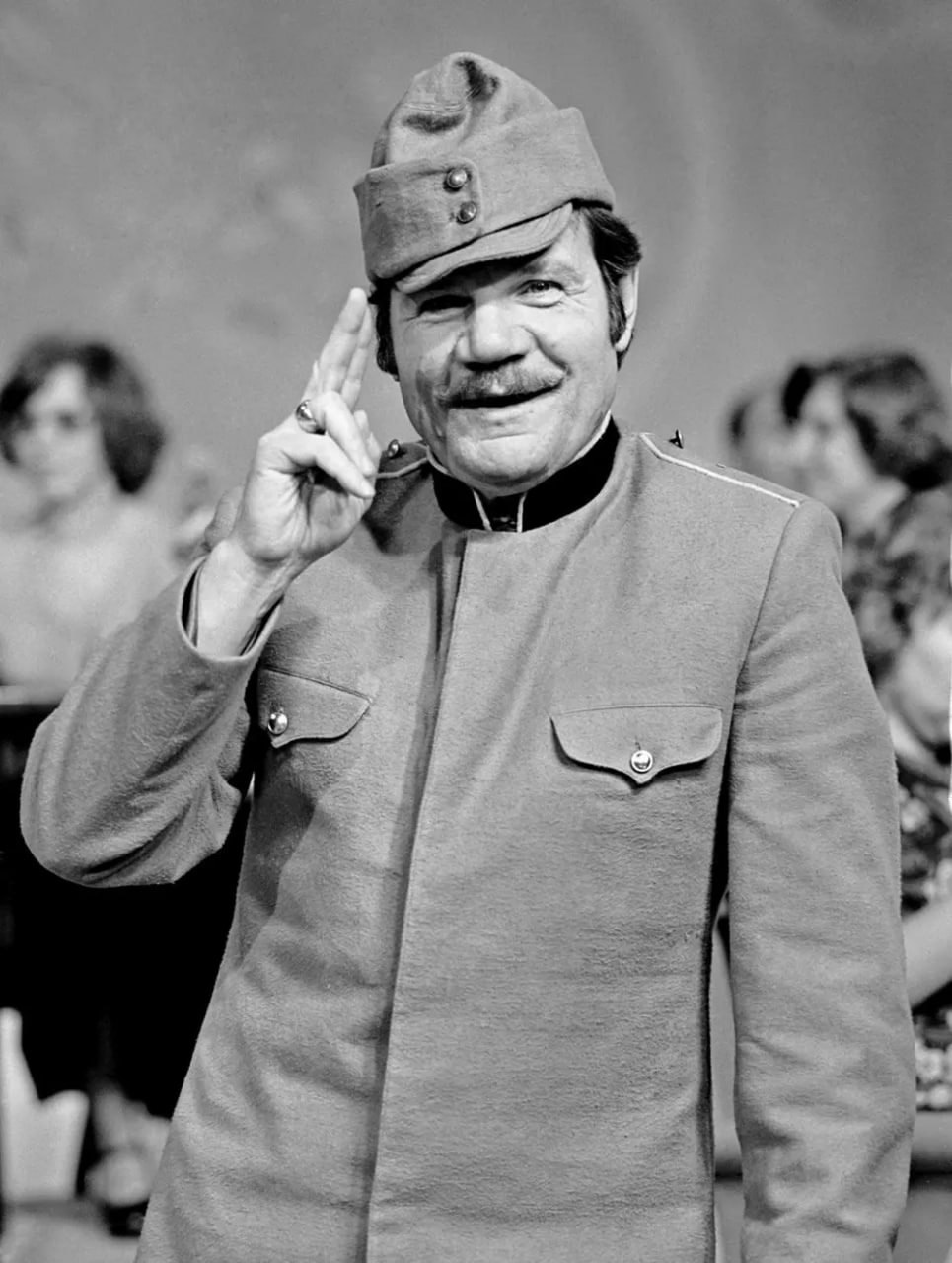 Михаил Пуговкин в роли бравого солдата Швейка на репетиции новогоднего «Голубого огонька», 1976 год