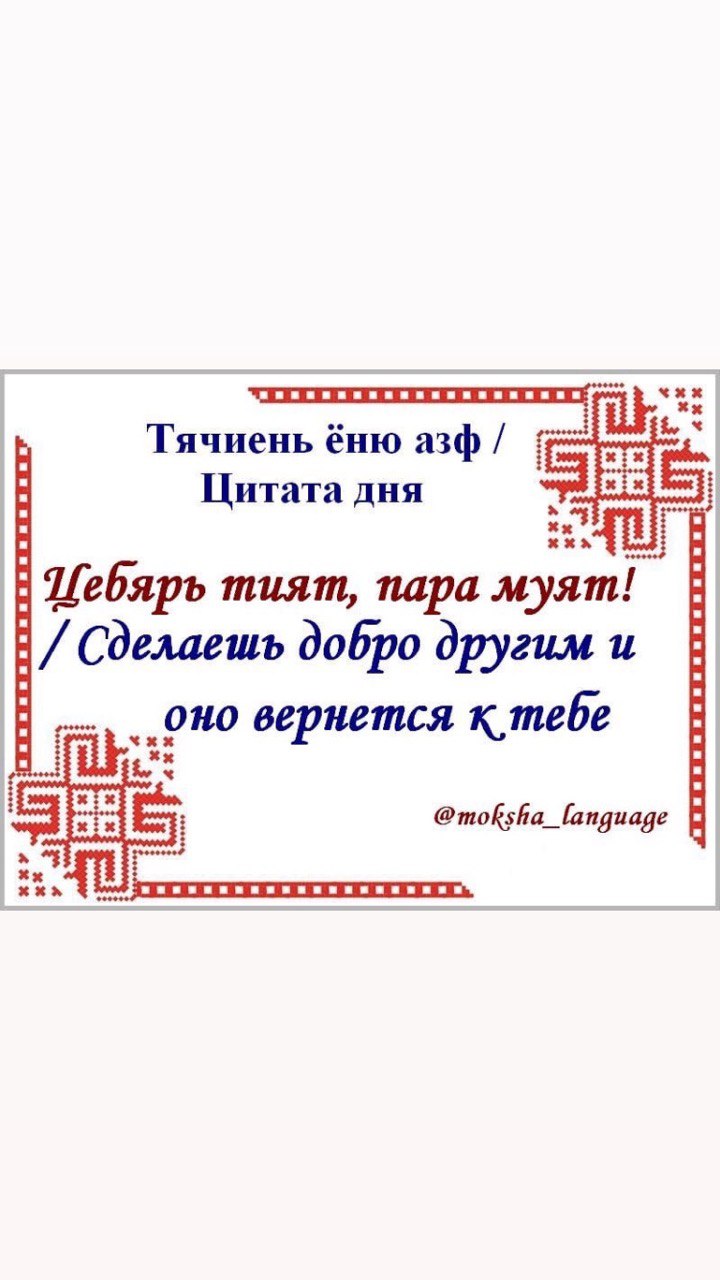 Кельгома ялгат! Россиянь шить мархта! Саранск ошть шачема шинц мархта! Сембонди шумбраши, ваймонь сетьмоши и валда менель вельхкссонк!