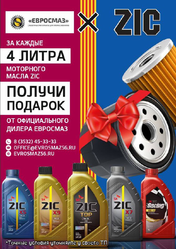 🤩 За каждые 4 литра моторного масла ZIC , получи ПОДАРОК 🎁