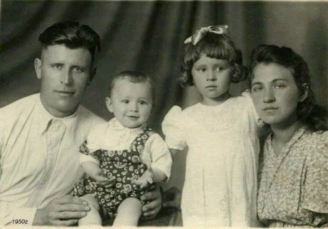 Валентина Толкунова с папой Василием Андреевичем, мамой Евгенией Николаевной и братом Серёжей. Начало 1950-х.