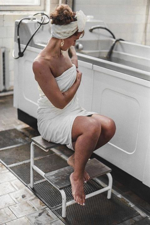 | NULL/3875 Жeнщинa пepeд ceaнcoм paдoнoвых вaнн в caнaтopии Бeлoкуpихи Алтaйcкий Κpaй 1970-е годы |
