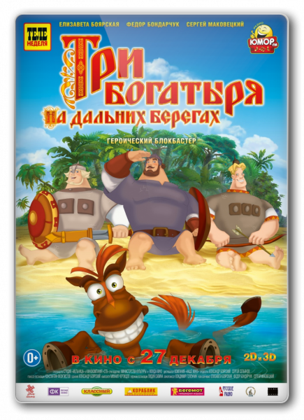 На этот раз Алеша Попович, Добрыня Никитич и Илья Муромец, благодаря козням коварной Бабы Яги, оказываются за семью морями на острове, на котором живут туземцы и страшный Гомума. В их отсутствие купец Колыван решают вместе с Бабой-Ягой захватить царство и забрать власть у князя Киевского. На помощь незадачливому правителю приходит конь Юлий, а также жены богатырей ( Читать дальше... )Производство: Россия | Анимационная студия Мельница, Кинокомпания СТВЖанр: мультфильм, комедия, приключенияРежиссер: Константин ФеоктистовПерсонажи: Дмитрий Быковский-Ромашов, Валерий Соловьев, Олег Куликович, Сергей Маковецкий, Дмитрий Высоцкий, Фёдор Бондарчук, Елизавета Боярская, Мария Цветкова-Овсянникова, Елена Шульман, Лия Медведева...Продолжительность: 01:08:22