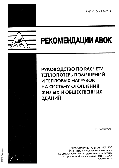 НП «АВОК» | Р НП «АВОК» 2.3-2012 Руководство по расчету теплопотерь помещений и тепловых нагрузок на систему отопления зданий (2012) [PDF]