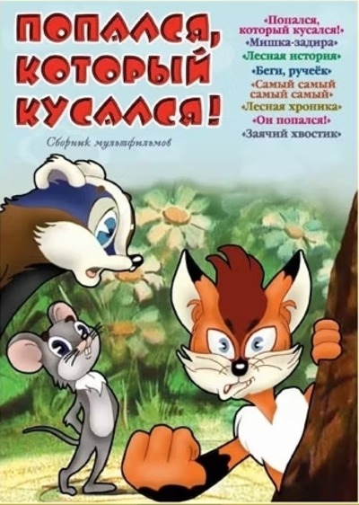 Сборник кукольных и рисованных отечественных мультипликационных фильмов для детей. В него вошли: Попался, который кусался; Мишка-задира; Лесная история; Беги, ручеек; Самый самый самый самый; Лесная хроника; Он попался!; Заячий хвостик.Производство: СССР / СоюзмультфильмЖанр: мультфильм, детский, короткометражкаРежиссер: Вячеслав Котёночкин, Пётр Носов, Лев Позднеев, Александр Иванов (II), Василий Ливанов, Вадим КурчевскийАктеры: Мария Виноградова, Маргарита Корабельникова, Клара Румянова, Николай Граббе, Вячеслав Богачёв, Людмила Гнилова, Рогволд Суховерко, Юрий Хржановский, Анатолий Папанов, Юлия Юльская и др.Субтитры: отсутствуютПродолжительность: 01:34:44